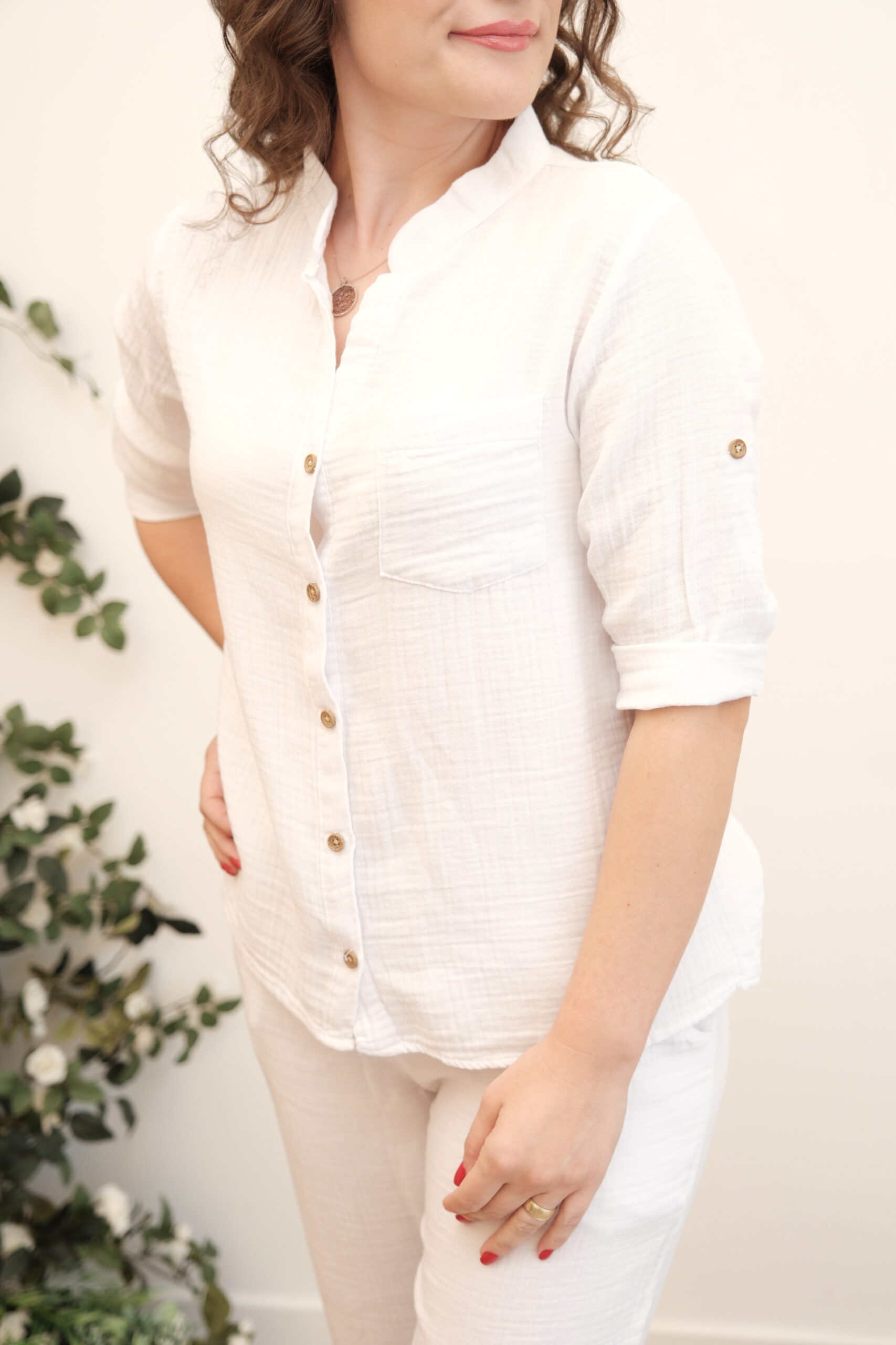 Pure Breeze Beyaz Müslin Takım, günlük rahatlıktan ödün vermeyen, zarif bir stil arayan kadınlar için tasarlandı. Doğal dokusuyla nefes alabilen %100 pamuk müslin kumaştan üretilmiştir. Yaz aylarında ferah, ilkbaharda hafif; dört mevsim kombinlenebilir bir kurtarıcı takımdır.